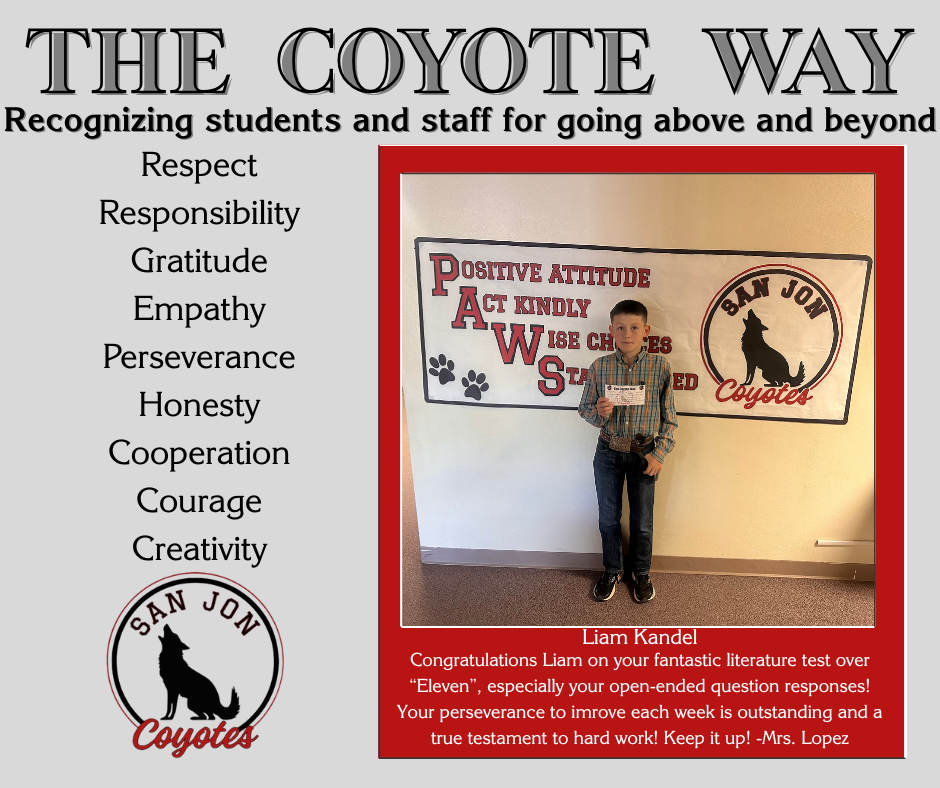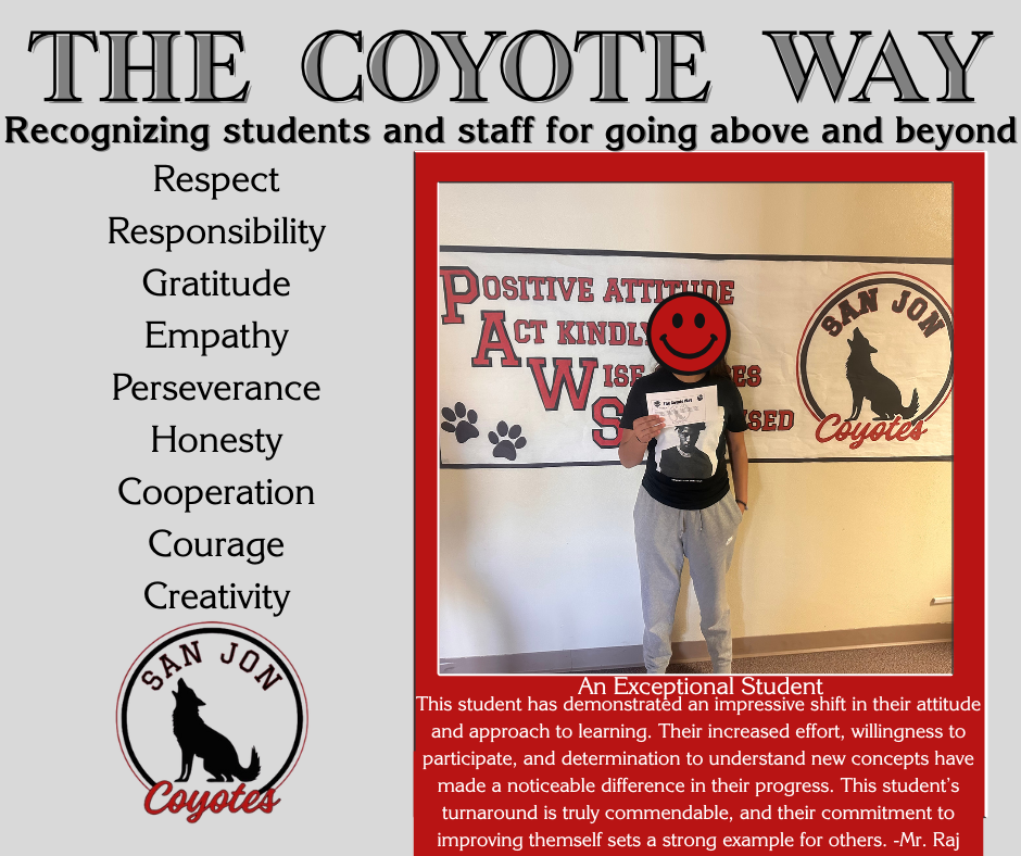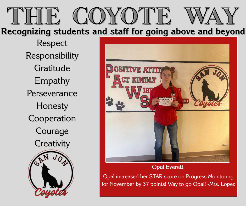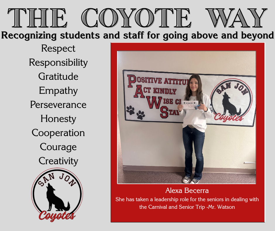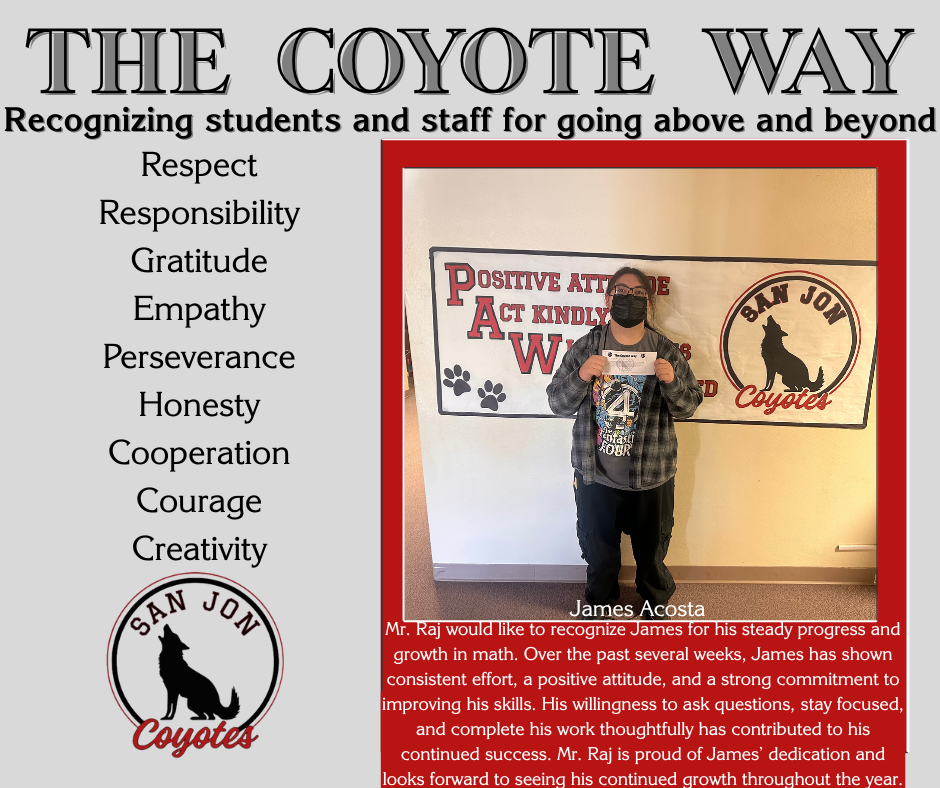 At San Jon Schools: We build a proud community, motivate our children to succeed, and ensure learning for all. We have a lot to be proud of in Coyote Country.