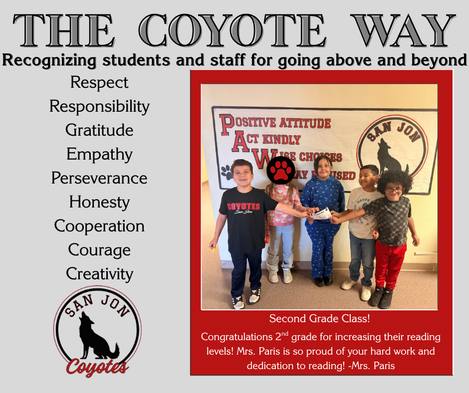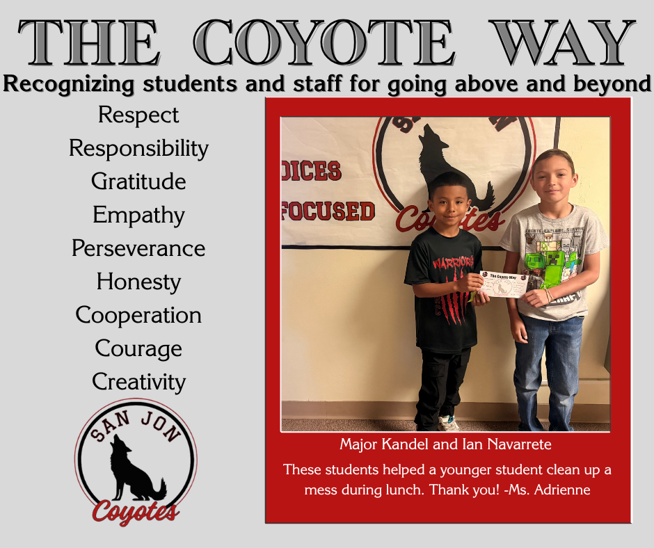 At San Jon Schools: We build a proud community, motivate our children to succeed, and ensure learning for all. We have a lot to be proud of in Coyote Country.